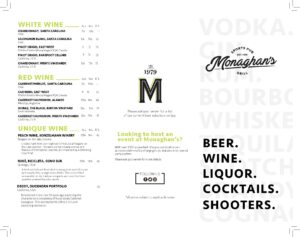 Monaghans Drink Menu Sports Pub Oakville 1.