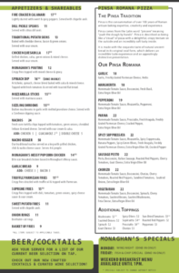 Monaghans Sports Pub and Grill Oakville Menu Nov 2022.
